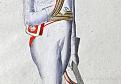 Die Dragoner - hier ebenfalls in der französischen = falschen Darstellung wie beim Musketier - sind rot, grün paspeliert; die Schoßumschläge haben ebenfalls grün zu sein (gelb bzw. paille hatte nur das Regiment Prinz Johann).